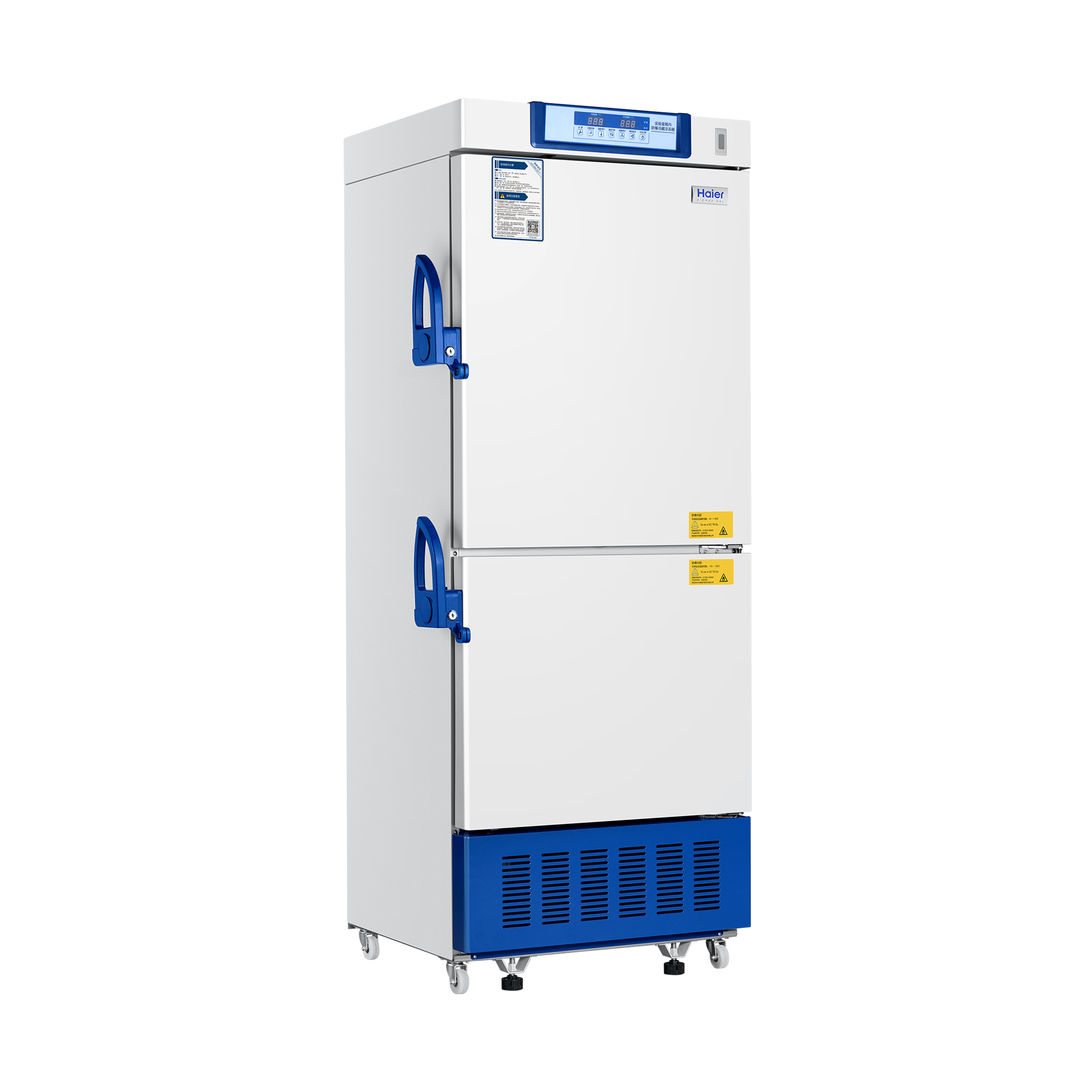 One cabinet with two independent chambers, both are self-contained and independently controlled with individual doors